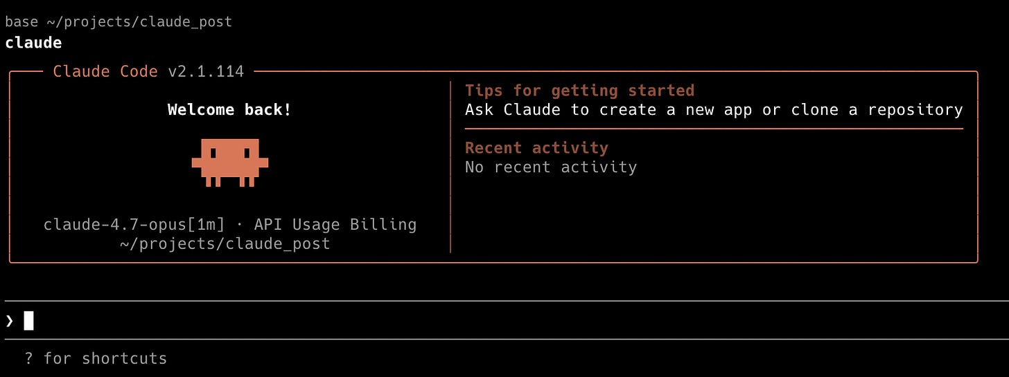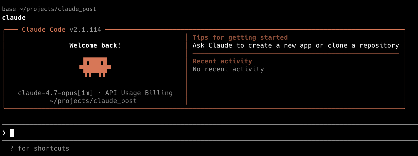 Open a terminal and Run claude in any directory. The first time, it walks you through login. You get two choices: a claude.ai account (Pro or Max plan) or an API key from the Anthropic Console. Pick the first one if you are a human writing code daily. Pick the second one only if you have a specific reason — Bedrock, Vertex, headless CI, Corporate use and that kind of thing.