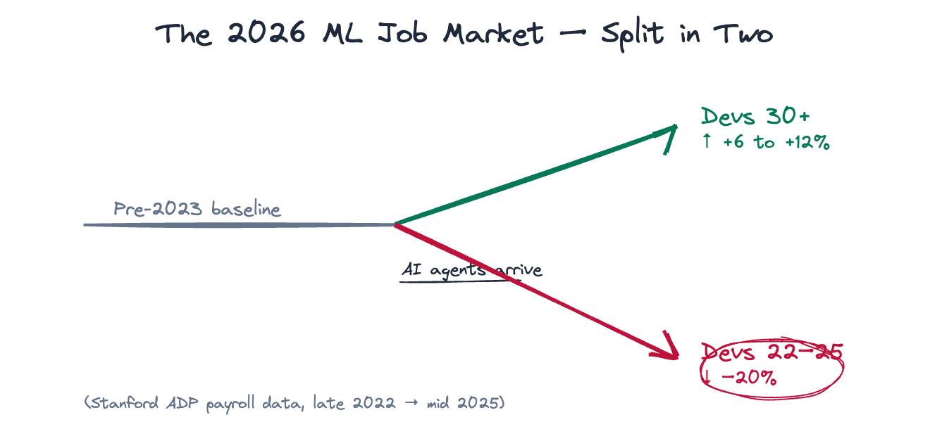 IMO, the 2026 ML job market is not dying. It has split into two. People in the first half are in real trouble. The other half may have the best market ML engineers have ever had. The whole game right now is figuring out which half you’re in, and making the moves that land you on the right side of that split.